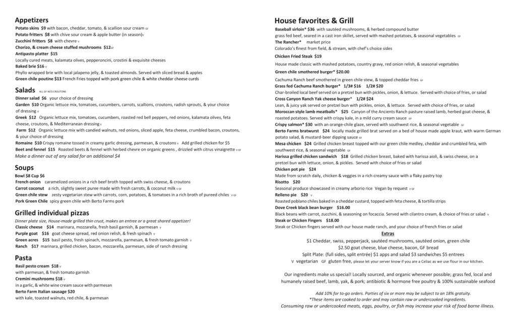 34 West Main in Cortez • Dinner monday through friday from 4-8:30, reservations 970 565 3834