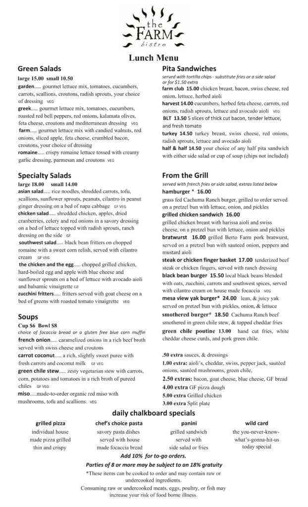 34 West Main in Cortez • Lunch monday through friday from 11-4, dine in or take out, 970 565 3834
