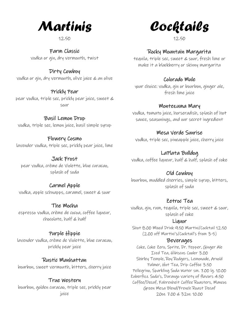 Cozy up to the fireplace or belly up to the bar in The Farm Bistro’s lounge. Grab a late lunch, or sample from the new Martini & Tapas menu! Our all-Colorado bar offers top shelf spirits, wonderful wines, and micro brew beer.